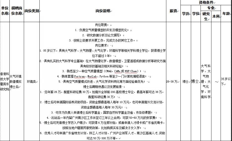大气环境数值模拟博士后一名