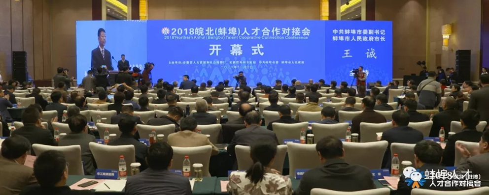 市政府副市长胡启望在致辞中说,一年一度的皖北(蚌埠)人才合作对接会,作为区域性引进集聚人才的重要平台,2014 年举办以来累计参展科技创新成果300多项,吸引各类人才2.4万余人,成为皖北地区人才合作对接的一张响亮“名片”。我们将认真学习贯彻习近平总书记“着力集聚爱国奉献的各方面优秀人才”的重要指示精神,以办好皖北(蚌埠)人才合作对接会为已任,以发展需要和社会需求为导向,进一步完善聚才的体制机制、引才的载体平台、育才的良好环境,更加注重环境引才、平台聚才、感情留才,为新时代高质量发展提供源源不竭的人才支持和智力支撑!