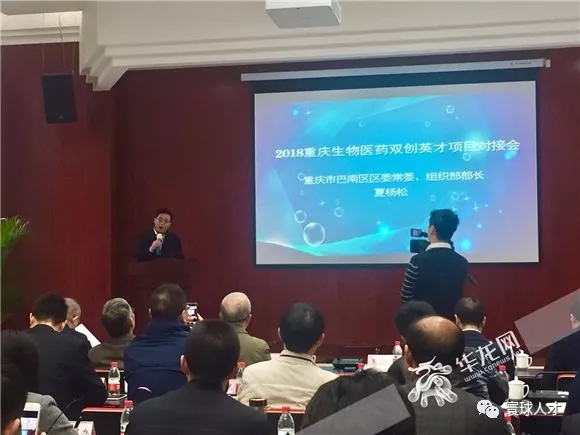 巴南区区委常委、组织部长夏杨松在“2018重庆生物医药双创英才对接会”上发言