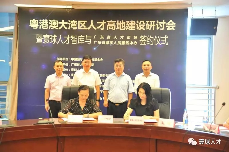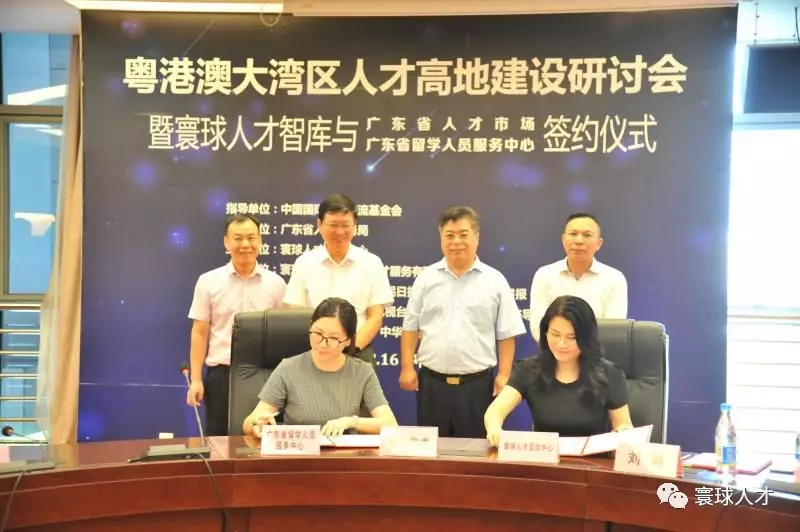 会上,寰球人才智库与广东省人才市场、广东省留学人员服务中心举行了合作签约仪式,双方将在广东省人才引进及出国留学深造等方面展开深度合作,这是政府人才引进交流工作深化改革、加大开放、转变职能的重大举措,是为粤港澳大湾区的创新和发展提供人才智力支撑的有益探索。